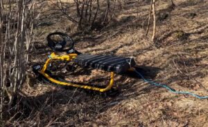 Har din snowracer rymt? Då kan det vara den som står vid ängen uppe på Tibbleberget. Se pil på kartan här intill. Styrskidan är trasig, men en sådan går lätt att byta.